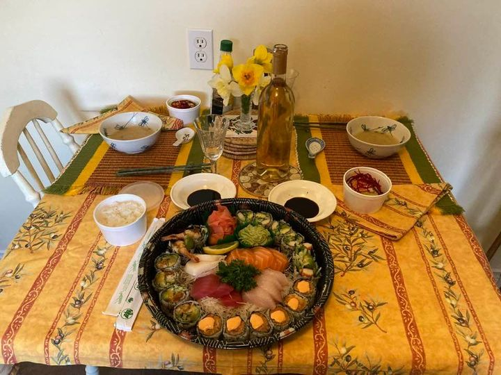 We actually had a celebratory dinner last night since our favourite restaurant is closed Sundays and enjoyed a feast of sushi that we opted, in these 6th wave of Pandemic times, to pick up and bring home!