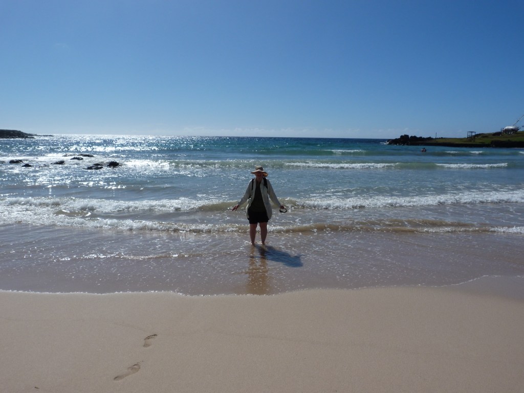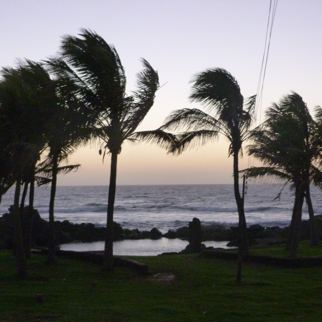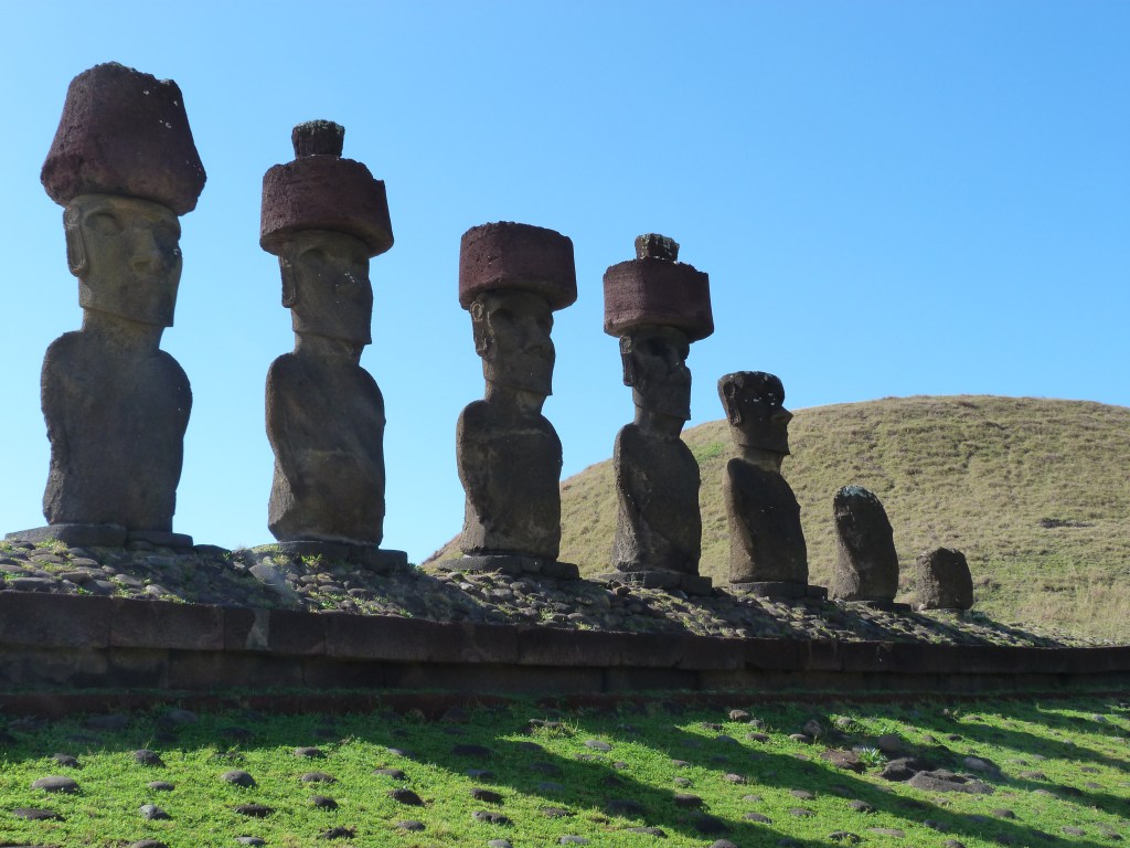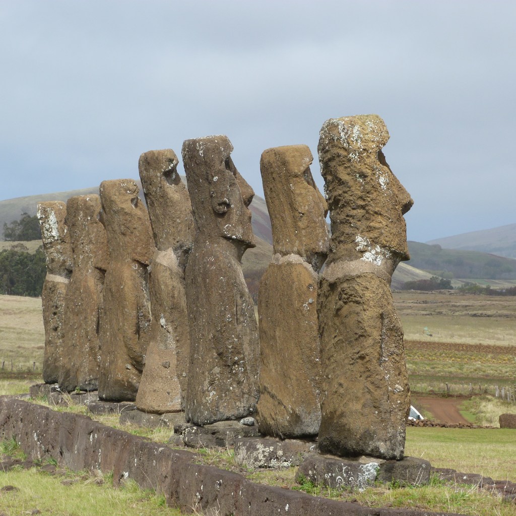 So, the memory that came up today was leaving 10 years ago for a 6 week contract in Santiago, Chile. While I did have to work Monday to Friday, I did have weekends off and, if there was a statutory holiday scheduled I might even have a long weekend, travel and see the country I was in. It happened that there was a long weekend while I was in Santiago and having got that far I saw no reason not to hop on a plane and head to Rapa Nui – also known as Easter Island – for a long weekend. I was also very lucky since flights are sometimes cancelled due to weather but mine, both going and returning, took off and arrived right on time. The experience began at the airport where the line up to check in was long … and consisted mostly of islanders returning home after shopping trips to Santiago and pushing huge carts containing almost every type of goods imaginable – including the kitchen sink – to be checked in as “excess baggage”. With my weekender suitcase I appeared to be a real anomaly. Eventually, all was dealt with and the plane took off!