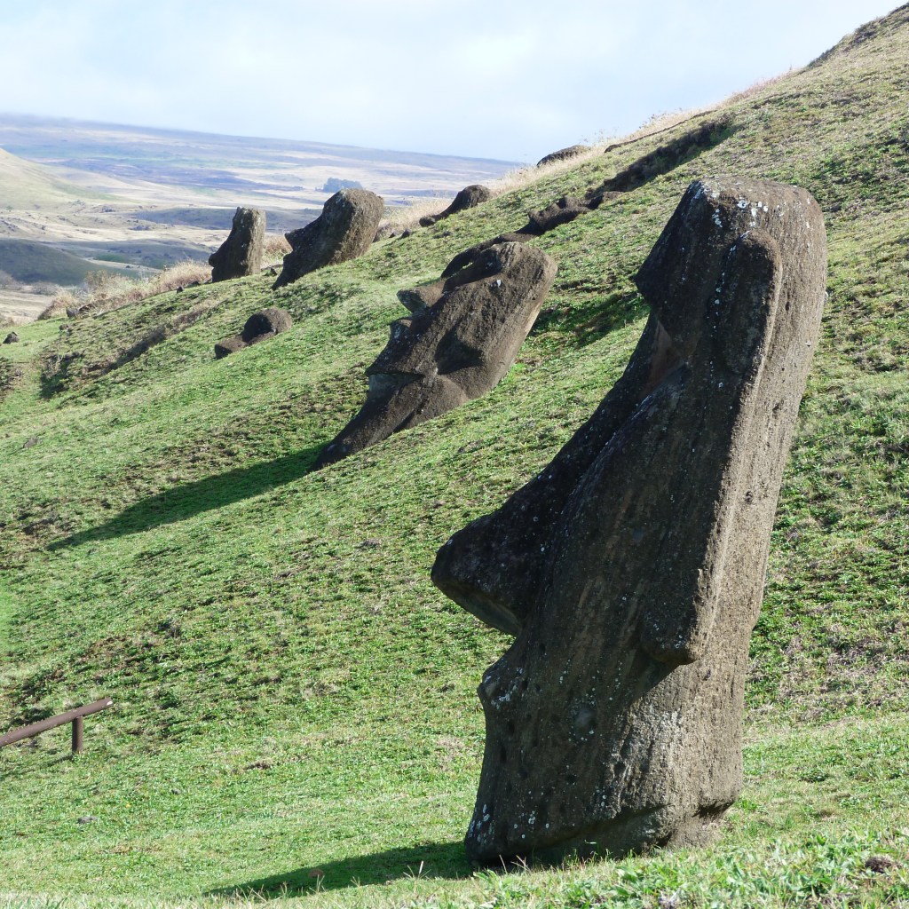 The next two days were in the company of a delightful New Zealander tour guide you had married an Easter Islander. The first day he took me on the South Coast Tour which included the Rango Raraku – quarry – as well as various sites where the final moai were placed on the shoreline.
