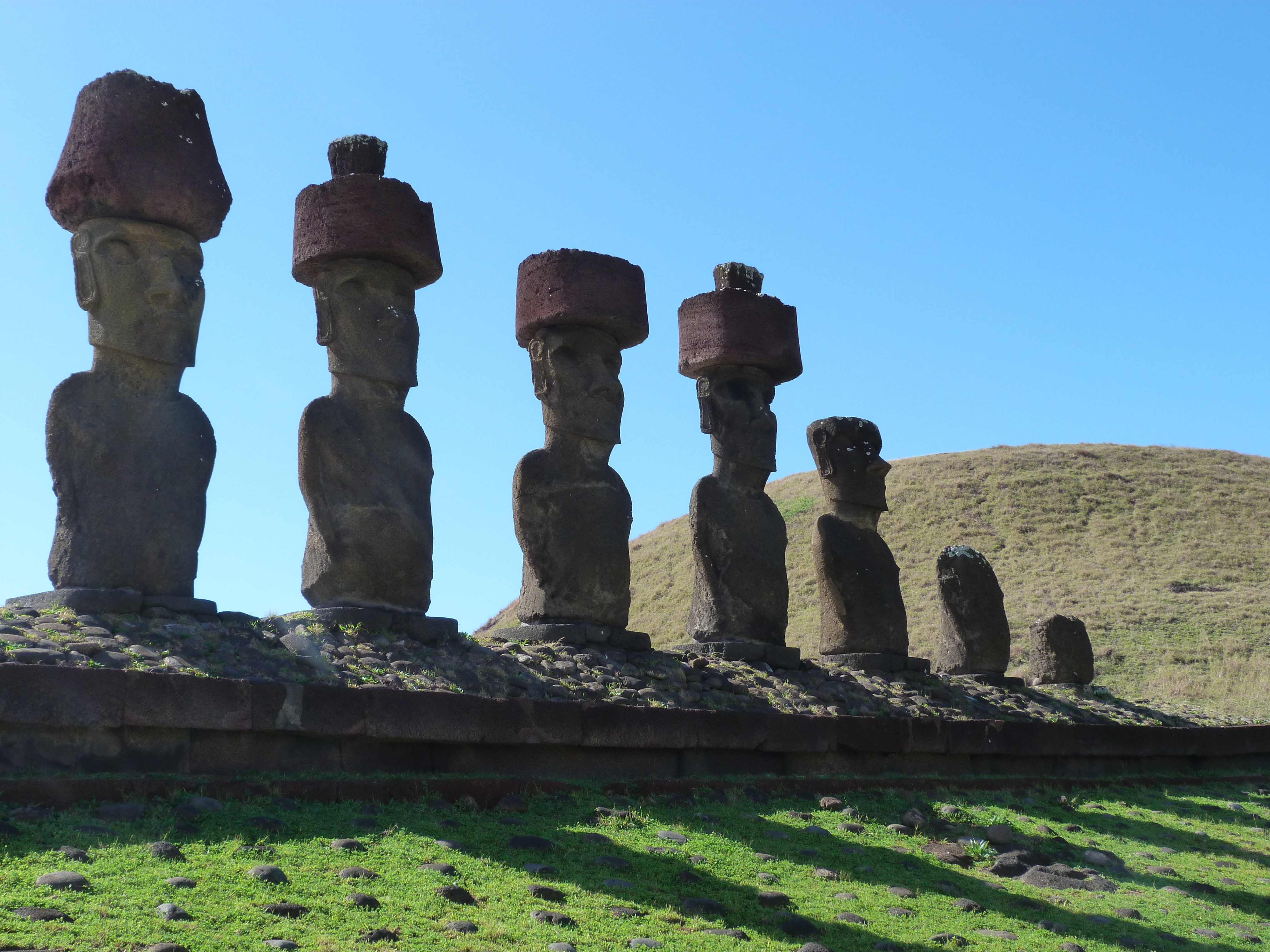 The second day we headed out on the West Island Tour which took us to an early Islander village that overlooked two small outlying islands, the volcanic lake Rano Kau, and yet more moai.