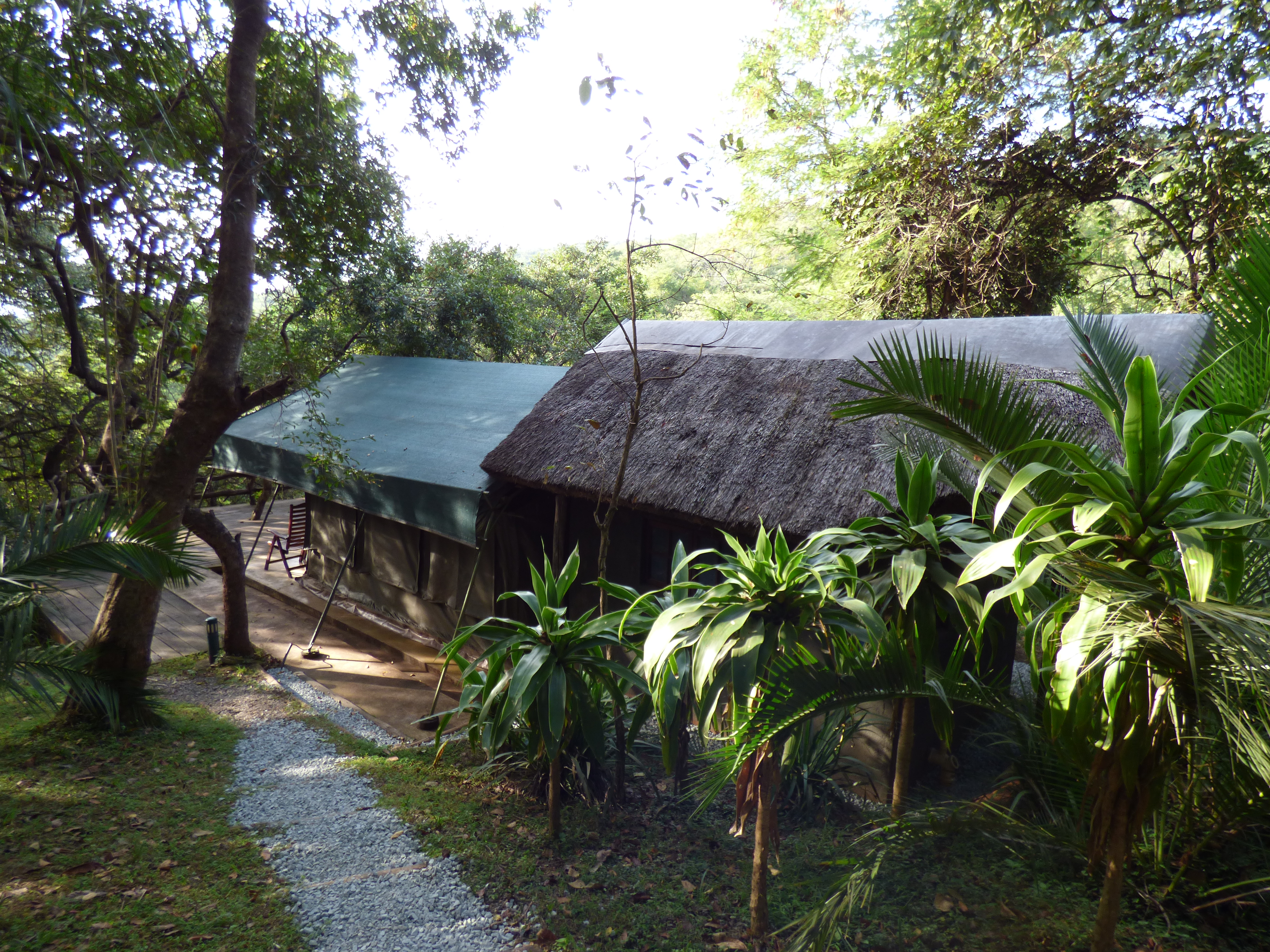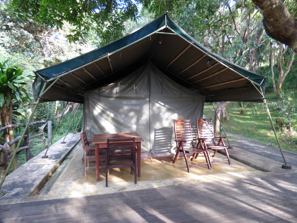 The tent was the sleeping quarters and was attached to a bathroom unit. The tent was airconditioned, carpeted and had a lovely deck and the monkeys made their way through the trees overhead!