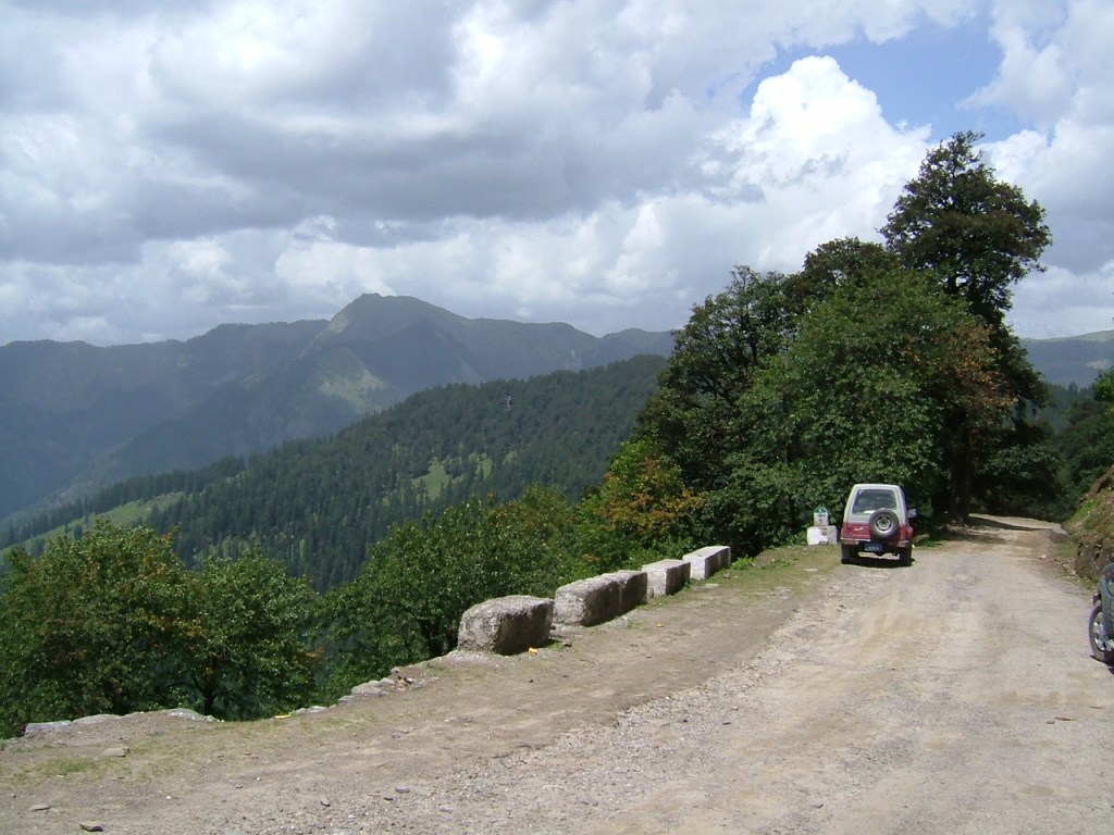 The following day, we carried on, found ourselves on the map and headed for the Jalori Pass. At 10,282 feet above sea level it is the first mountain pass heading north from New Delhi 600 km to the south. It was a narrow road, winding and steep. Gypsy was not thrilled with it – we had not had her carburetor set for high elevations and did not know how to do it ourselves. For the last kilometer of elevation we had to stop every few hundred metres, turn her off and wait while her radiator stopped boiling! However, we eventually made it to the top!
