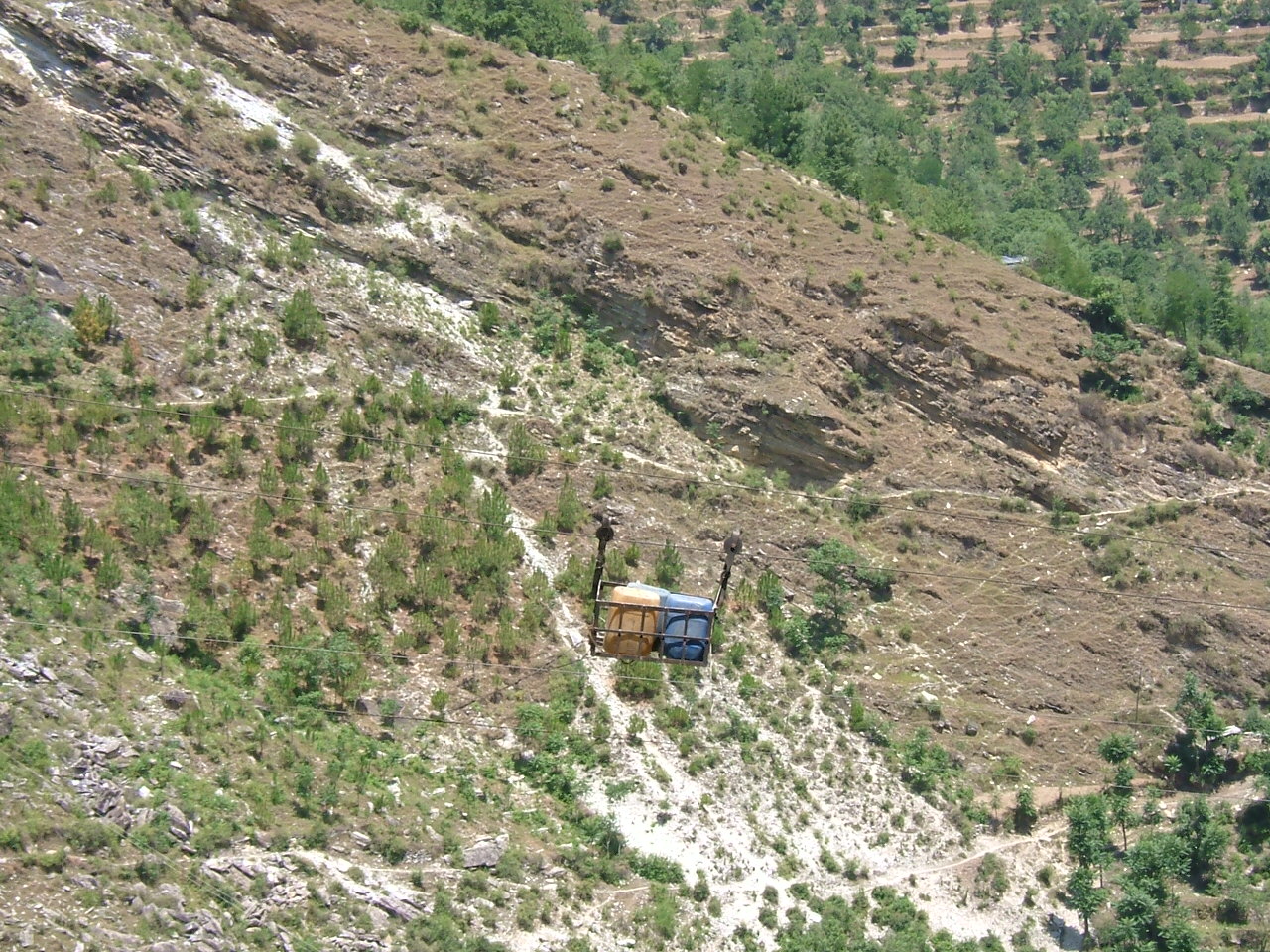 Travelling through the Himalaya foothills (I hate to call them mountains!) we saw ingenious ways of getting people or items from one place to another –