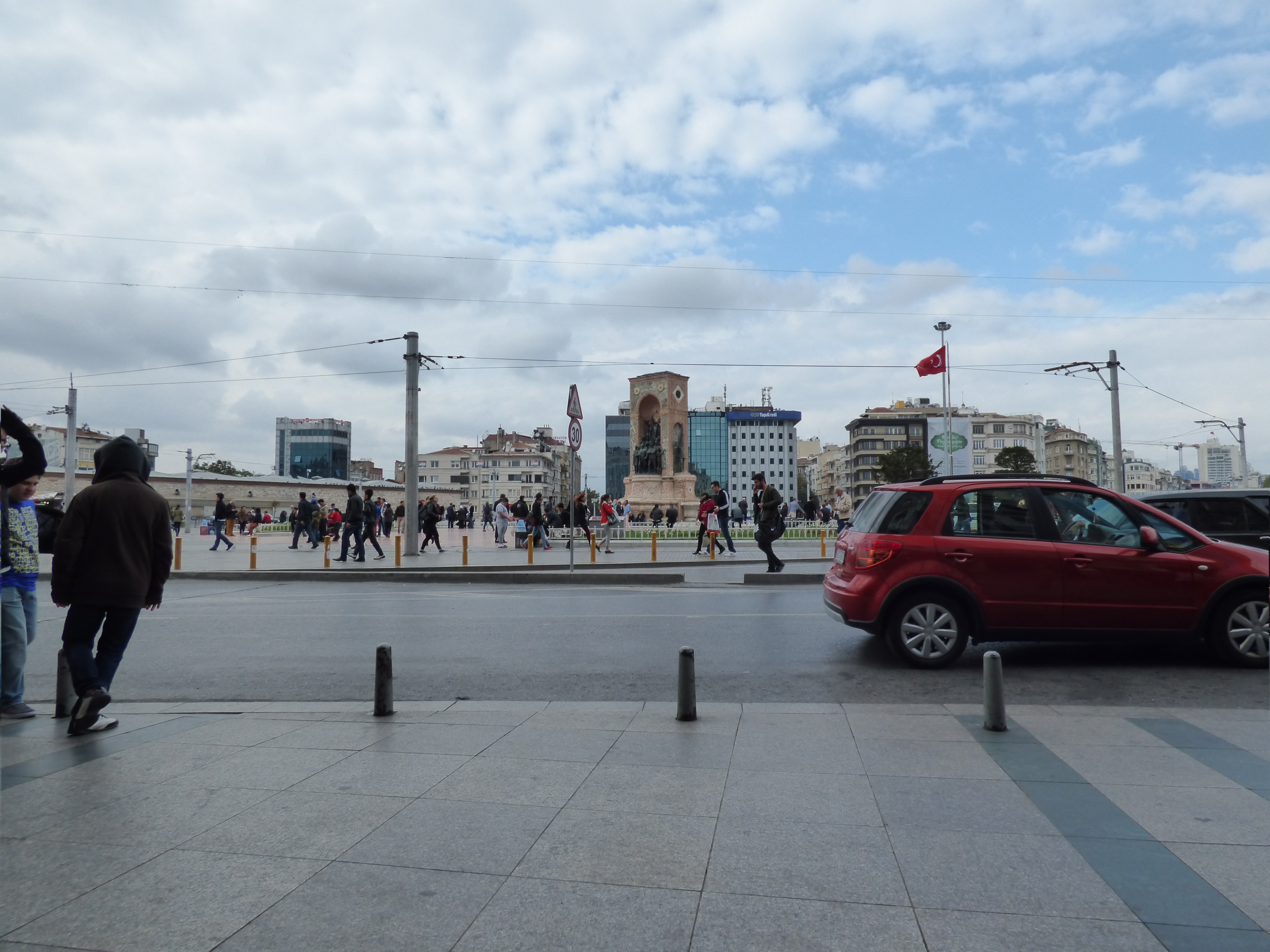 The view from a sidewalk table at the Starbucks in Taksim Square, Istanbul, Turkey.
