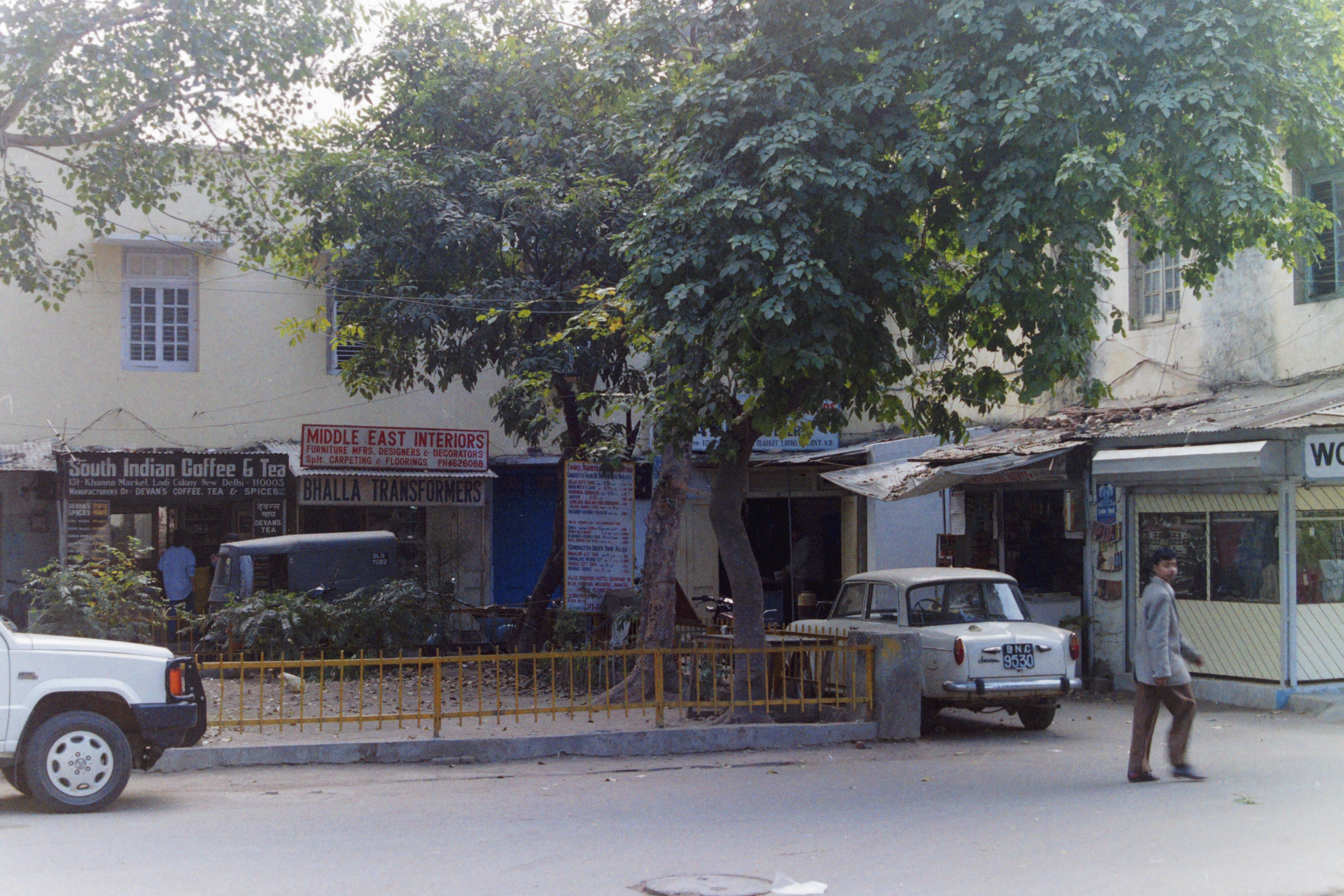 South Indian Coffee and Tea Co, New Khanna Markeet, New Delhi, ca 1994 – not to mention the wool shop at the right of frame and all of its temptations!