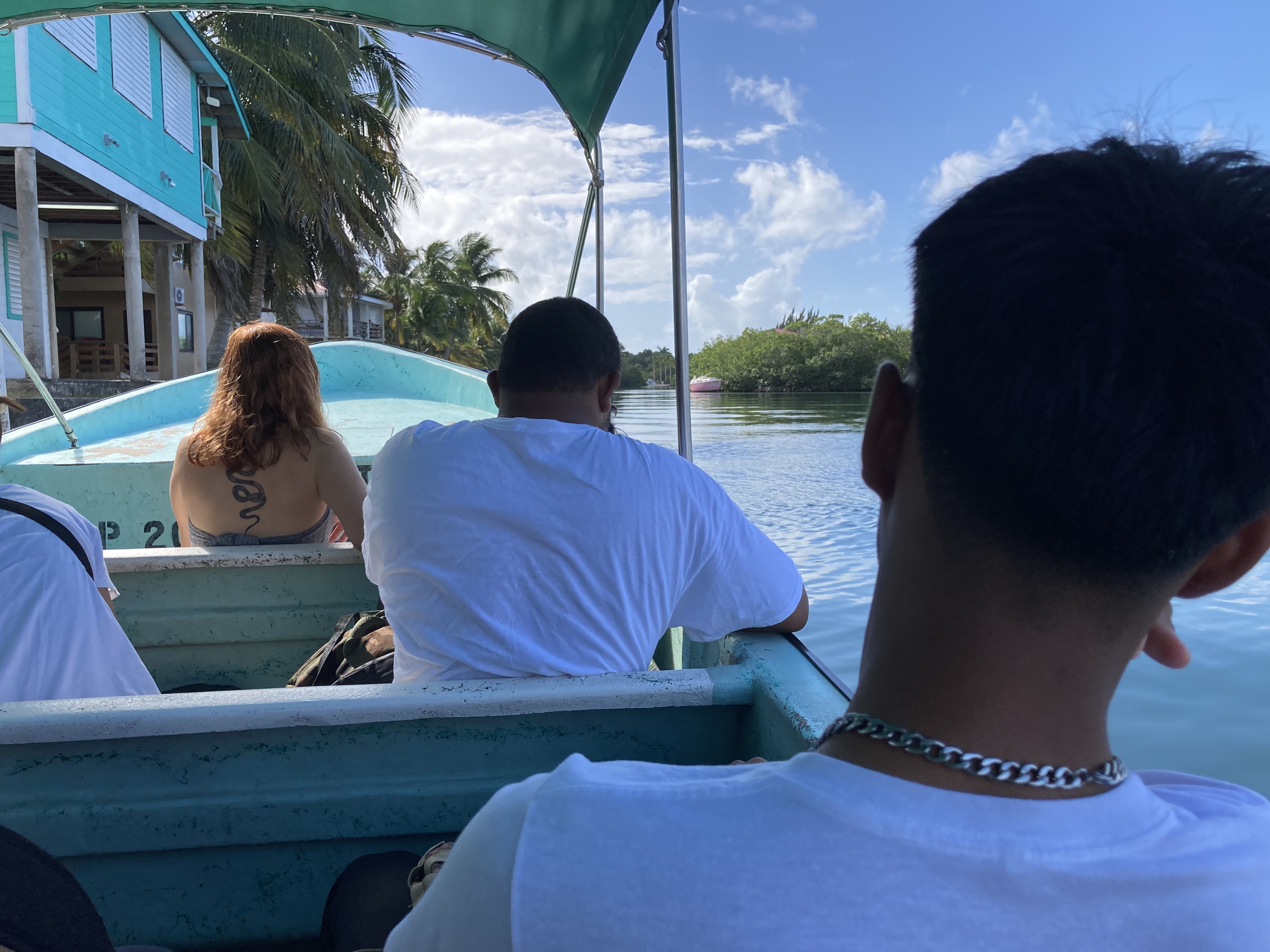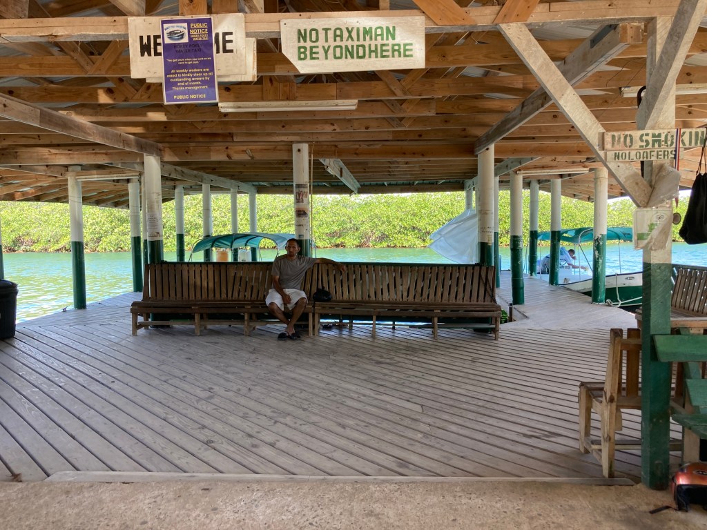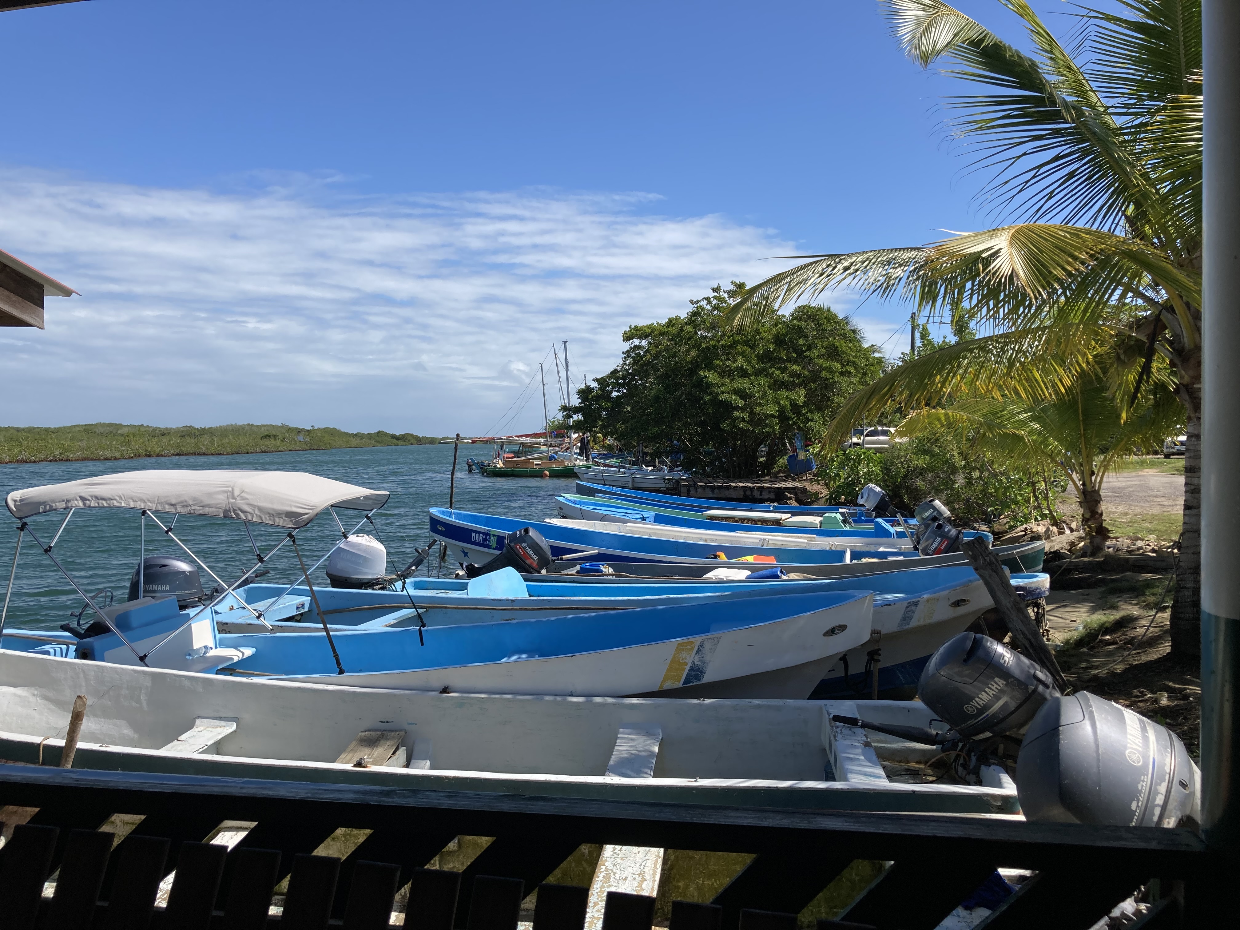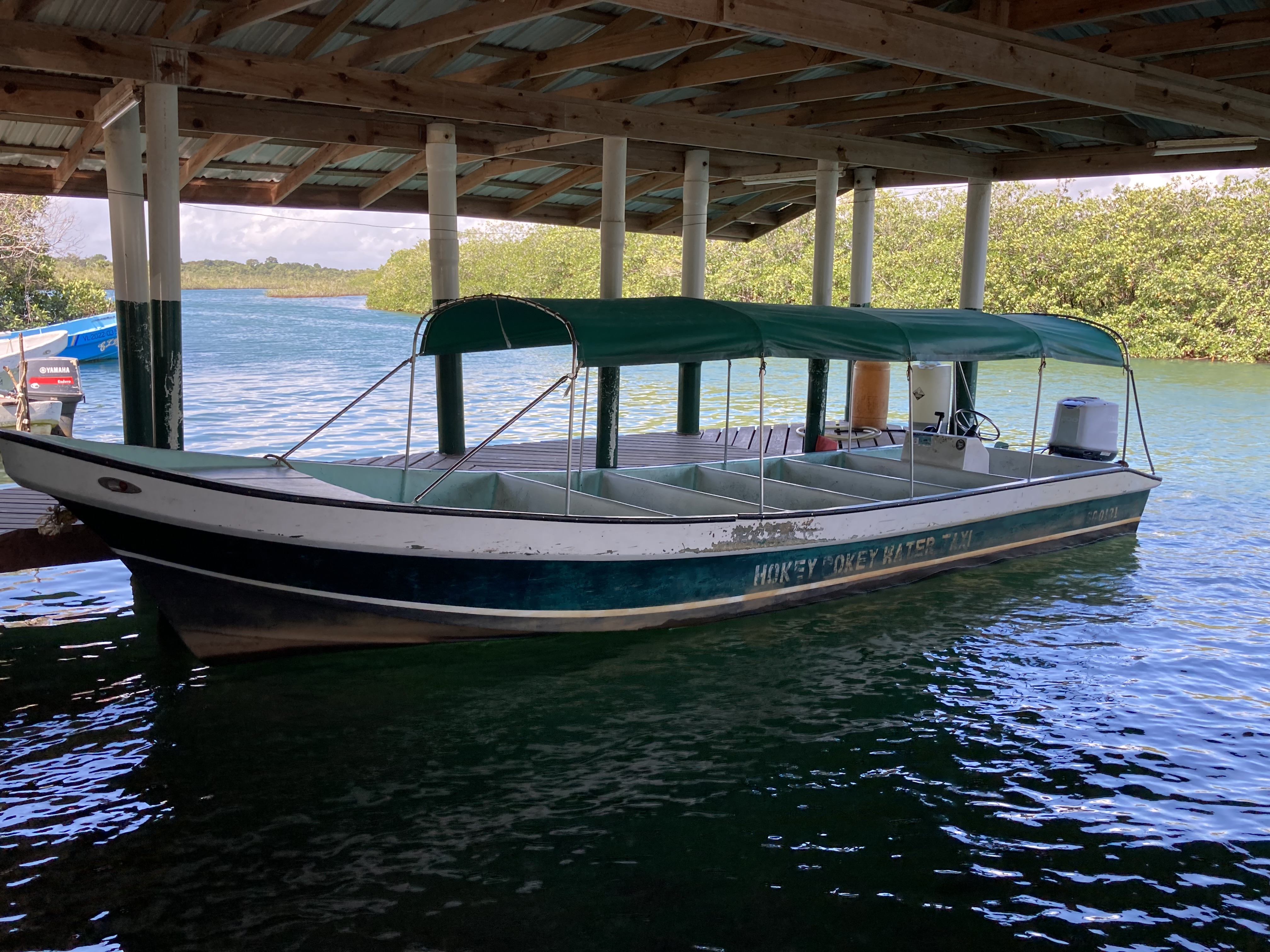 So, this time I decided to try the Hokey Pokey Water Taxi service. I got up early and called Walter, my usual taxi guy but he was off to Belize City and trying Eddin, his #2, I found out he was also out of town. So, I sent a message to Edwin to see if he knew another taxi driver and got no response (turns out that he was out of town for his “day job” as I heard after I was back!). So, that being the case, I got ready and left here about 8:45, untied the boat (thankfully, no need to bail after yesterday’s few skiffs of rain), tied up on the dock on the other side of the canal and set off on foot to walk the mile and a half to the UNO dock where the Hokey Pokey is based on this side. Arriving at 9:15 I bought a ticket on the 10:00 am taxi for a mere $7.25 Belize and sat down to wait. Much like Tropic Air, the Hokey Pokey goes when full and we headed off about 9:40!
