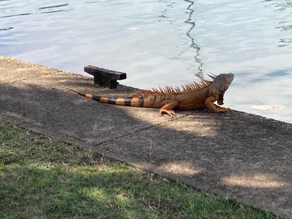 As I got close to back to my dock, I saw this fella – about 2 feet nose to tail – out sunning himself beside the canal.
